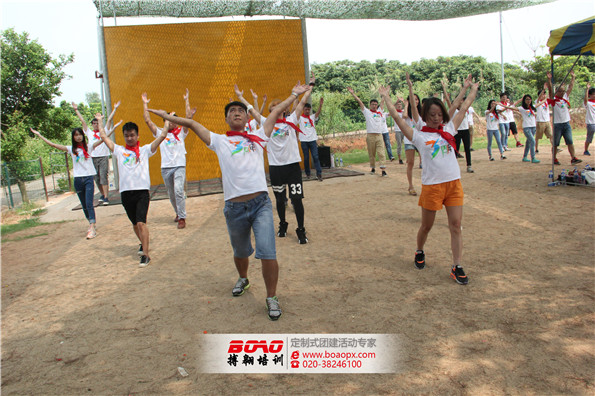 廣州搏翱拓展培訓(xùn)的教練團(tuán)隊(duì)首先帶領(lǐng)各位小伙伴進(jìn)行了破冰,使伙伴們心靈之間的距離更加貼近,排除隔閡。然后再進(jìn)行一些列的游戲環(huán)節(jié)讓伙伴們進(jìn)行近距離的互動。緊接著做一下身體拉伸,看,像不像我們的第8套廣播體操,目的讓身體進(jìn)入戰(zhàn)斗狀態(tài)。